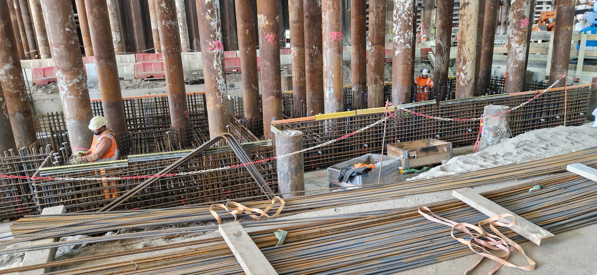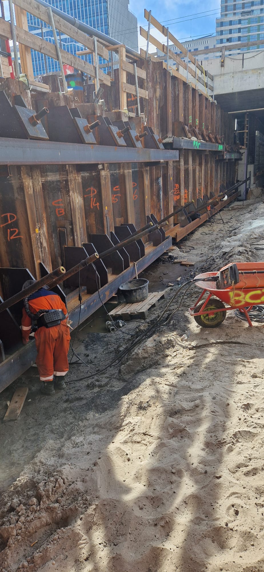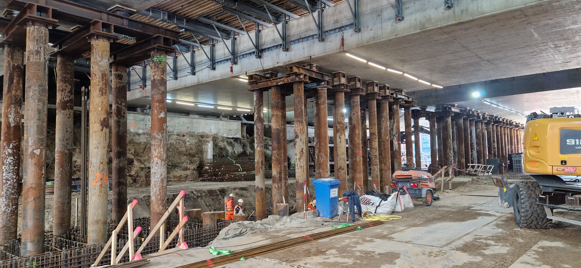Ons team was verantwoordelijk voor het leveren van de hulpconstructies die nodig waren om het project soepel te laten verlopen, zonder de trein- en metroverbindingen te verstoren. Dit omvatte onder andere het installeren van verankeringsconstructies. Het gordingwerk zorgde voor de nodige ondersteuning tijdens de complexe fasen van de bouw van de dakdelen, die in meerdere delen onder de sporen van het station werden geplaatst. Dankzij onze expertise kon dit kritieke werk efficiënt worden uitgevoerd binnen het beperkte tijdsbestek.